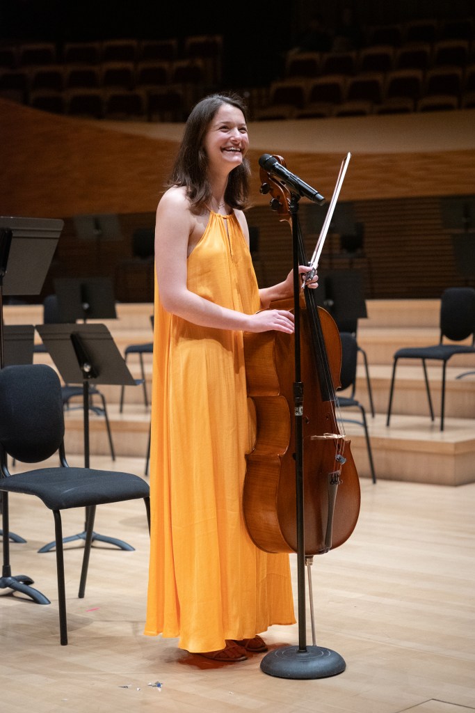 When Ambler walked onstage in a sunset-yellow dress and first introduced us to her cello, Shelby, I thought we would hear a joyful, light-hearted solo. However, the story she told through her improvised piece was much more complex.